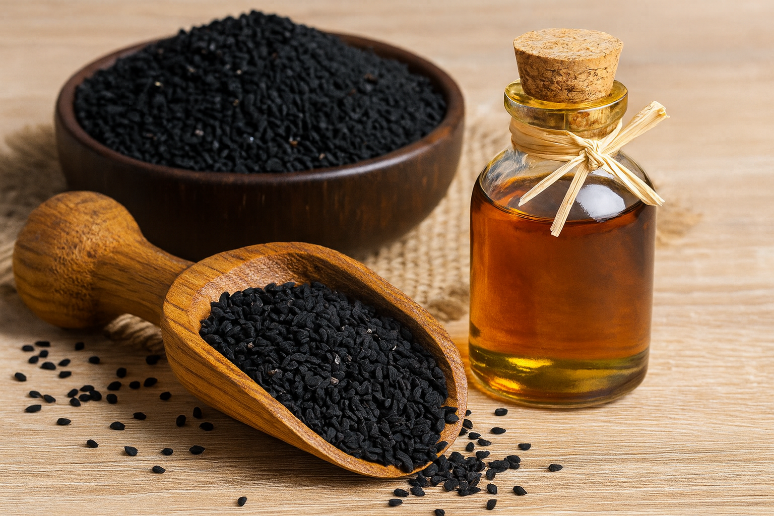 Pure, cold-pressed black seed oil rich in thymoquinone and antioxidants.